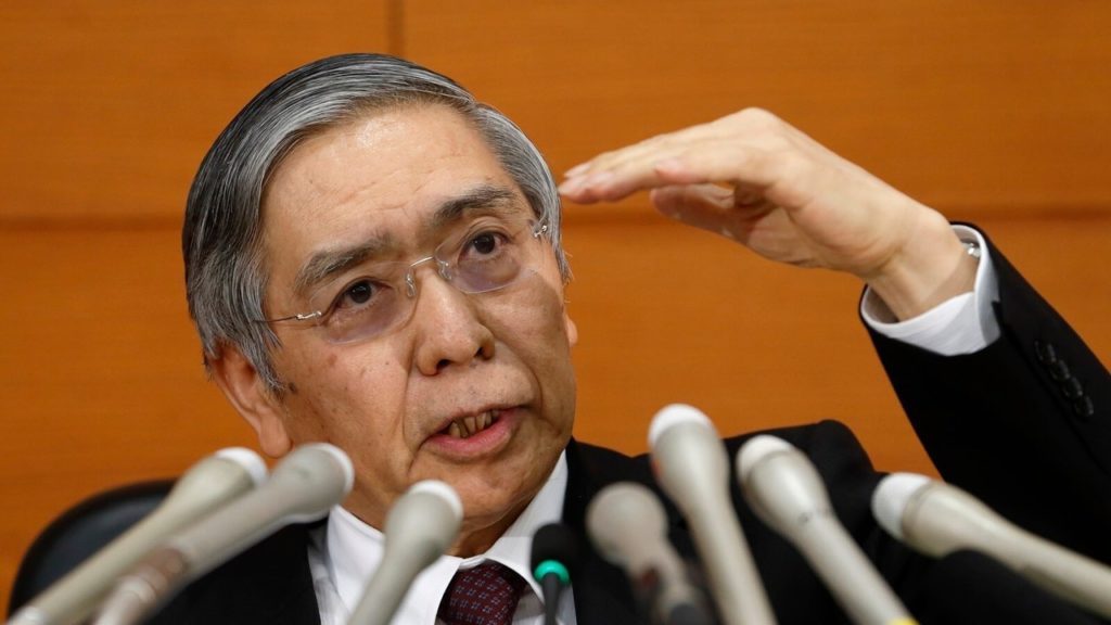 Kuroda mengatakan pagi tadi, bahawa bank pusat komited untuk meningkatkan asas monetary (monetary base) bagi mencapai sasaran inflasi.