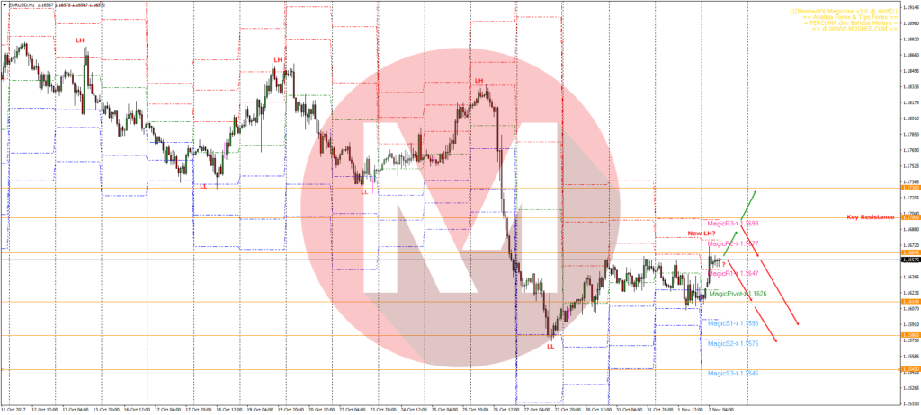 Oleh itu, peluang yang boleh diperhatikan ketika ini adalah di sekitar MagicR2 atau MagicR3 dan sekiranya ia terus bearish, target bearish adalah di sekitar harga 1.1614 atau ke harga 1.1580. Walaubagaimanapun, jika ia breakout 1.1700, EUR/USD berkemungkinan akan mencapai ke resistance seterusnya 1.1730.