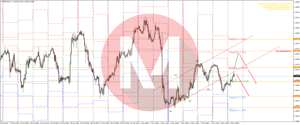 GBP/USD semalam bearish setelah ia gagal untuk breakout previous HH sekitar harga 1.3175/64 dan penurunan lebih kurang 70+ dan breakout trendline/support 1.3120. Secara teknikal, GBP/USD berpotensi untuk bearish ketika ini selagi ia tidak breakout MagicR2/Key Resistance hari ini 1.3214/00.