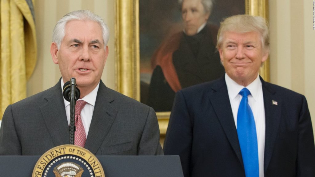 Tillerson dilaporkan telah menggelarkan Trump “dungu” pada Julai lalu. Namun, Tillerson enggan mengakui perkara tersebut. Pegawai di White House berkata Trump meminta Tillerson untuk meletak jawatan pada Jumaat tetapi tidak mahu mengumumkannya semasa beliau dalam lawatan ke Afrika. Pengumuman ini hanya beberapa jam selepas Tillerson mendarat di Washington.