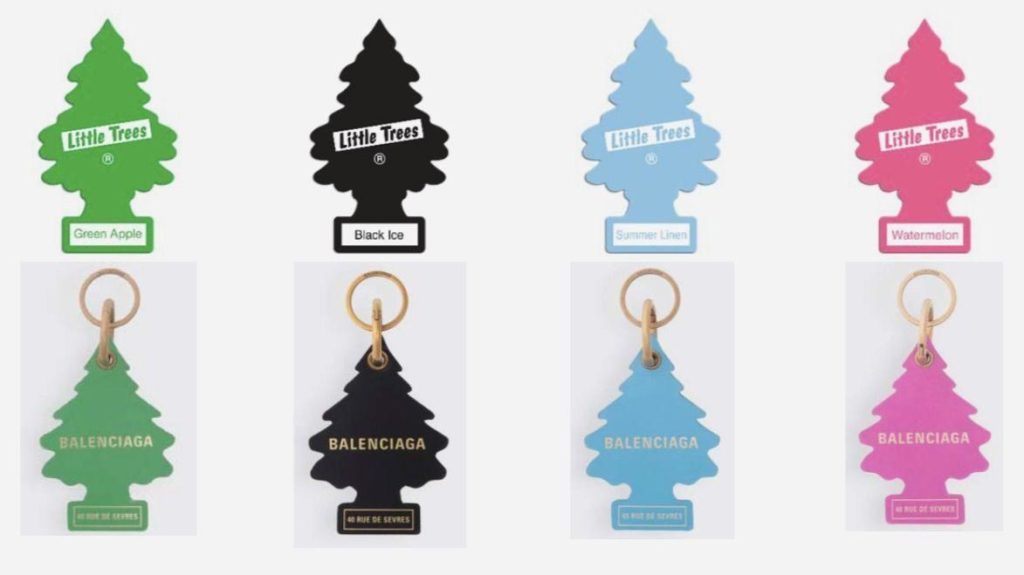 Pemilik produk Little Tree iaitu Car Freshner Corporation telah memfailkan saman terhadap Balenciaga kerana meniru reka bentuk produk pewangi mereka Little Tree.