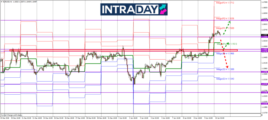 Pada sesi pasaran Asia pagi ini, harga dilihat masih terus menyambung kenaikan ke paras lebih tinggi menuju ke paras resistance 1.1589 (MagicR1). Jika momentum kenaikan tersebut berjaya dikekalkan, harga bakal menuju pula ke paras resistance yang berada lebih tinggi iaitu pada 1.1636 (MagicR2). Seterusnya, harga yang meneruskan kenaikan ke paras lebih tinggi bakal menguji zon resistance pada dagangan September tahun lalu sekitar 1.1712 (MagicR3).