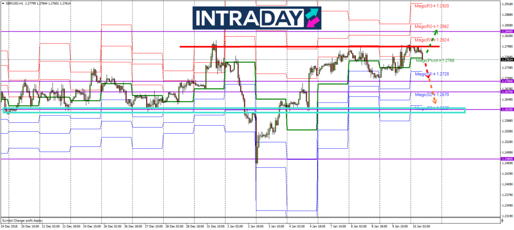 Pada sesi pasaran Asia pagi ini, harga bergerak mendatar lebih tinggi dari paras Magic Pivot 1.2766 sehingga ke penghujung sesi Asia. Jika harga membuat kenaikan pada dagangan hari ini, paras awal yang dilihat akan dituju harga adalah pada resistance 1.2824 (MagicR1). Seterusnya, harga yang berjaya meneruskan kenaikan ke paras lebih tinggi bakal menguji zon resistance yang diuji harga pada dagangan November lalu di sekitar paras 1.2862 (MagicR2). Namun jika harga masih mampu mengekalkan lonjakan, harga bakal mencatatkan paras ketinggian semasa yang baru pada chart GBP/USD di sekitar 1.2920 (MagicR3).