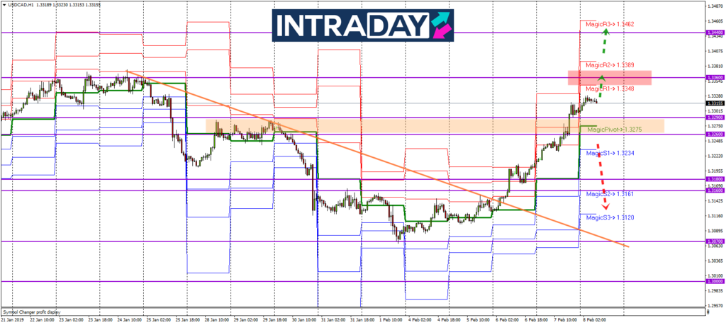Pada sesi pasaran Asia pag ini, harga masih menunjukkan tanda-tanda kenaikan harga di mana harga terus mengatasi paras ketinggian pada dagangan semalam. Kenaikan lebih tinggi harga dilihat akan menyentuh paras resistance yang berada pada 1.3348 (MagicR1). Jika harga terus membuat kenaikan ke paras lebih tinggi, zon resistance sebelum ini di sekitar paras 1.33600 bakal ditembusi sebelum harga menuju ke paras sekitar 1.3389 (MagicR2). Harga berkemungkinan akan mencatatkan paras ketinggian terbaru dengan lonjakan seterusnya dilihat mampu mencecah ke paras resistance pada 1.3462 (MagicR3).