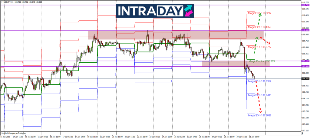 Namun, jika harga berjaya melonjak semula sehingga mengatasi paras Magic Pivot 109.189 hari ini, berkemungkinan harga akan meneruskan kenaikan ke paras lebih tinggi dan paras awal yang dilihat akan menjadi tumpuan harga adalah pada resistance 109.577 (MagicR1). Seterusnya, harga akan kembali menguji zon resistance semasa pada kenaikan harga yang seterusnya menuju ke paras resistance 110.135 (MagicR2). Paras ketinggian terbaru pada chart USD/JPY akan terus dicatatkan harga jika momentum kenaikan berjaya dikekalkan dijangka akan ke paras sekitar 110.523 (MagicR3).