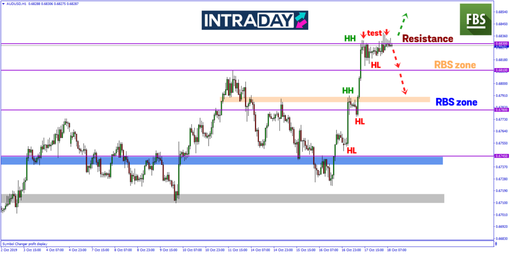 Sekiranya paras resistance 0.68300 berjaya ditembusi, harga berpotensi untuk mencapai kenaikan sekitar 50 atau 60 pips lebih tinggi lagi menuju ke paras ketinggian yang dicapai harga pada dagangan September.