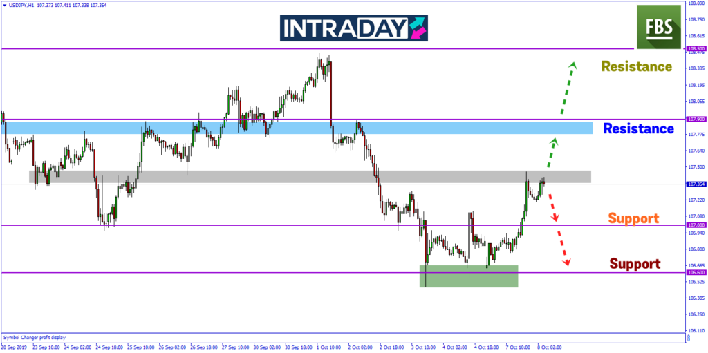 Kenaikan pada sesi dagangan New York pada USD/JPY semalam telah mencapai paras ketinggian pada zon RBS (resistance become support) pada 107.400 dan harga dilihat masih menguji paras tersebut pada sesi Asia hari ini.