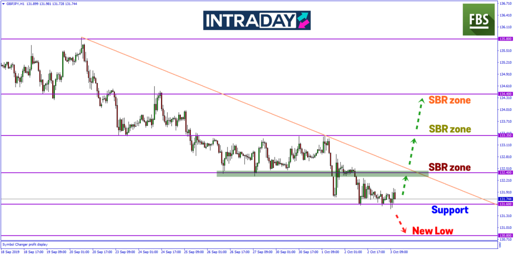 Harga bergerak perlahan pada dagangan hari ini menguji paras support pada 131.600 dan bakal meneruskan penurunan lebih rendah harga jika perkembangan mengecewakan rundingan Brexit.