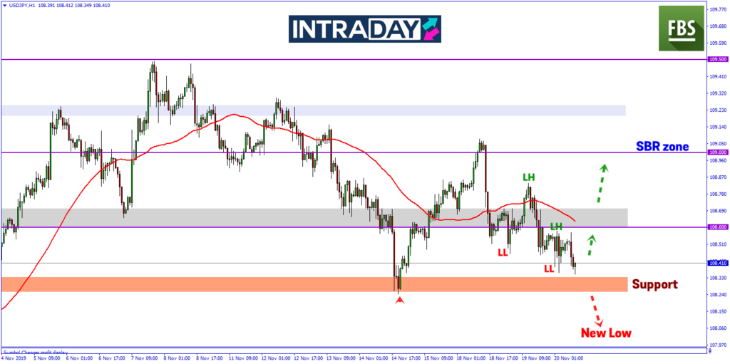 Penurunan harga menuju zon support sekitar 108.300 yang diuji pada dagangan minggu lalu.