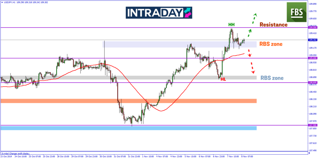 Harga pada sesi pasaran Asia semalam pada mulanya membuat penurunan sehingga ke zon RBS (resistance become support) pada sekitar 108.700 sebelum membuat lonjakan harga.