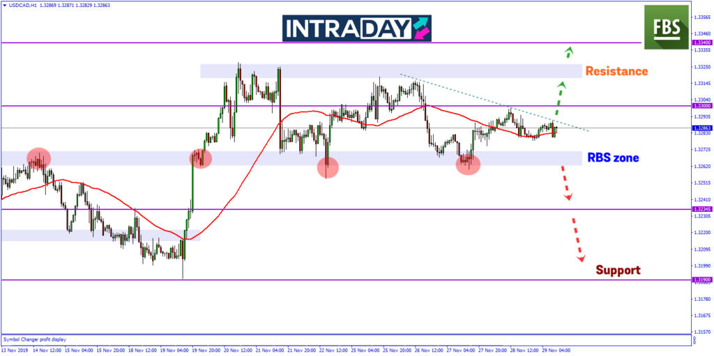 Harga bergerak di bawah paras harga 1.33000 sejak semalam pada carta USD/CAD dan mendatar di atas garisan sokongan Moving Average 50 (MA50).