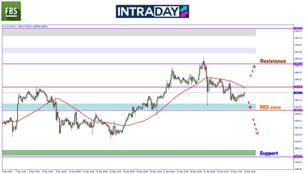 Penurunan lebih rendah akan dijangkakan menguji zon RBS (resistance become support) 1850.00 sebelum penurunan selanjutnya harga berpotensi menuju semula ke paras tumpuan 1800.00.