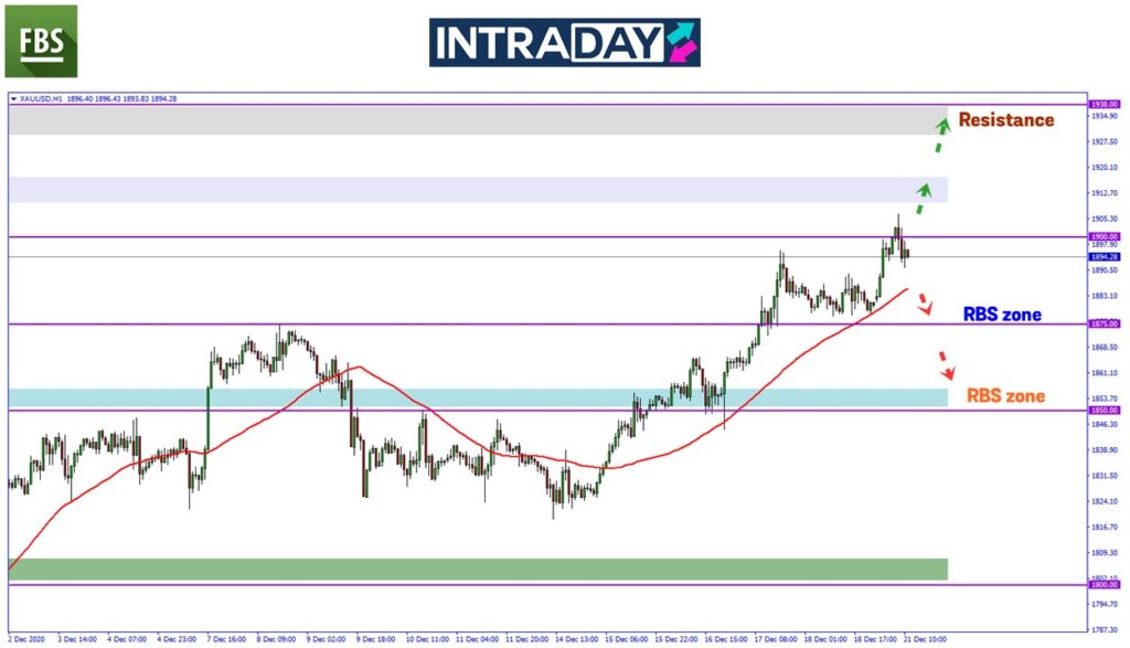 Namun jika harga kembali membuat penurunan semula dari paras 1900.00, paras 1875.00 pada zon RBS (resistance become support) akan kembali diuji.