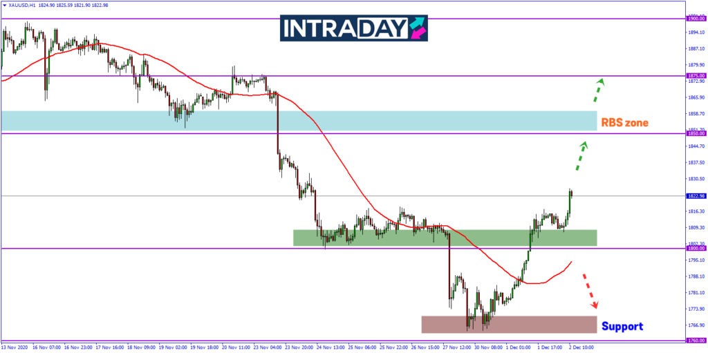 Pada dagangan Selasa semalam kenaikan harga emas telah melepasi zon SBR (support become resistance) 1800.00 dengan kenaikan diteruskan lagi pada hari ini.