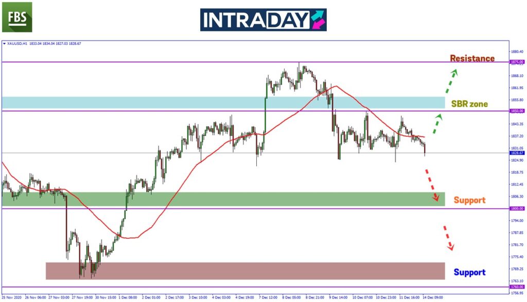 Penurunan lebih rendah dijangkakan menuju ke paras sokongan 1800.00 sebelum harga yang meneruskan penurunan seterusnya akan ke zon support yang diuji pada penghujung dagangan November sekitar 1764.00.