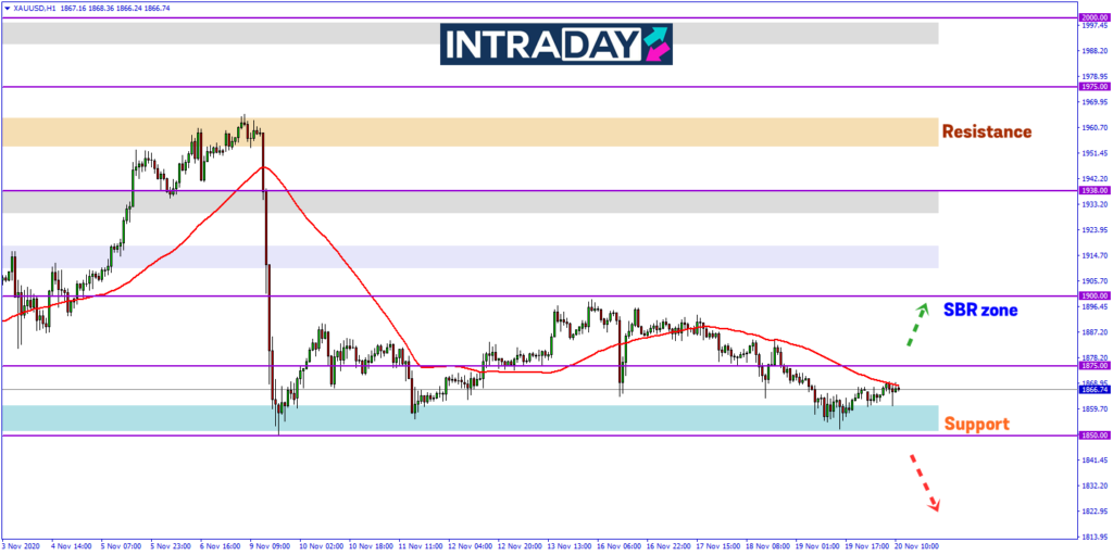 Pelabur mula menerima isyarat trend penurunan selepas harga bergerak di bawah paras halangan Moving Average 50 (MA50) pada rangka masa 1 jam harga sehingga harga menuju ke zon support 1850.00 pada dagangan semalam.