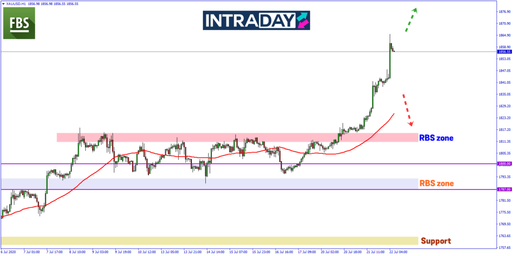 Penurunan harga yang berlaku berkemungkinan akan kembali semula ke zon RBS (resistance become support) 1815.00 atau paras tumpuan 1800.00 sebelum harga kembali membuat kenaikan semula.