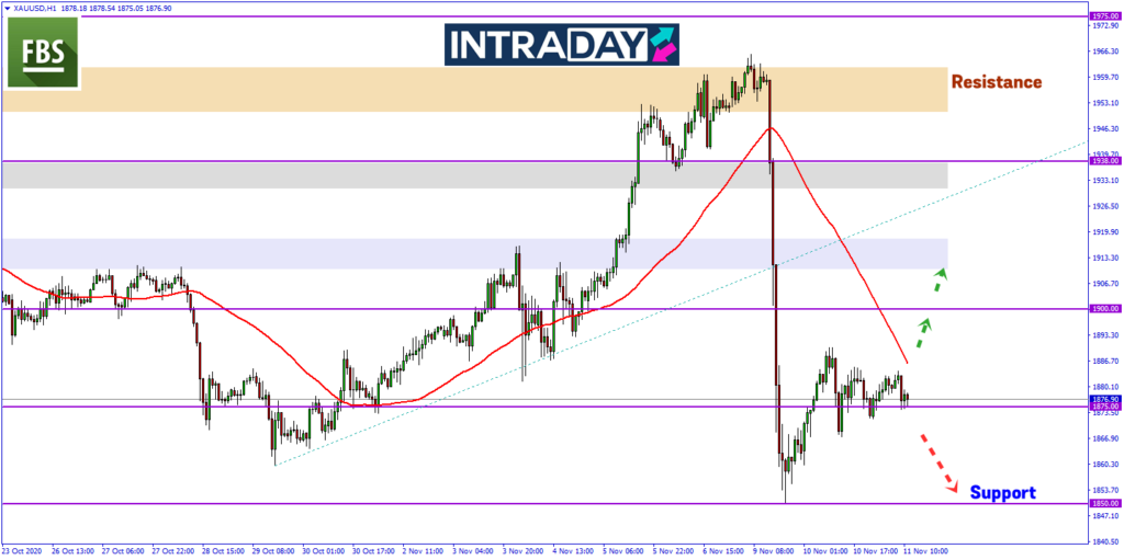 Pada carta harga XAU/USD yang mengukur pergerakan harga emas, selepas mencecah ke paras terendah terjunan pada 1850.00, harga mula dilihat bergerak membuat kenaikan semula.