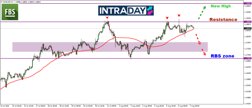 Pergerakan harga akan diperhatikan sama ada harga mampu menembusi resistance 1.19000 pada hari ini. Jika paras tersebut berjaya ditembusi, harga berkemungkinan menuju paras 1.20000 untuk mencapai paras ketinggian terbaru sejak dagangan April 2018.