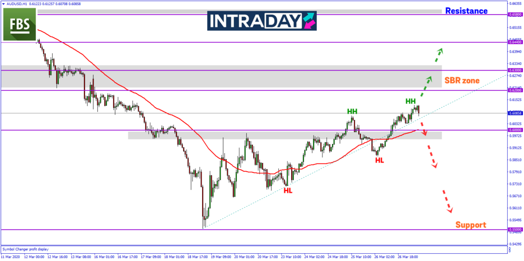 US dolar yang berterusan lemah dilihat akan mendorong kenaikan harga menuju paras 0.6300 menguji zon SBR (support become resistance) tersebut.