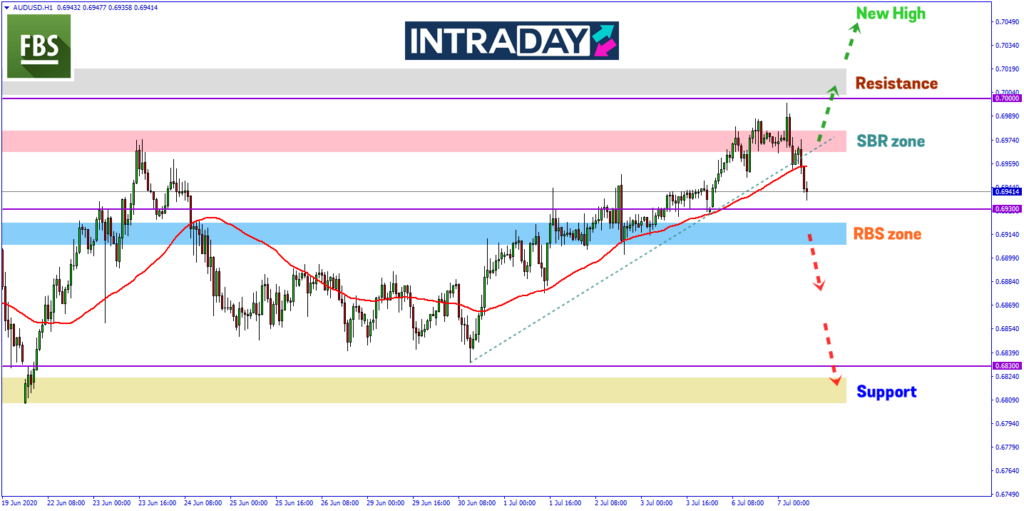 Namun jika harga kembali membuat kenaikan semula, paras resistance pada 0.70000 akan diuji untuk harga menentukan pergerakan selanjutnya.
