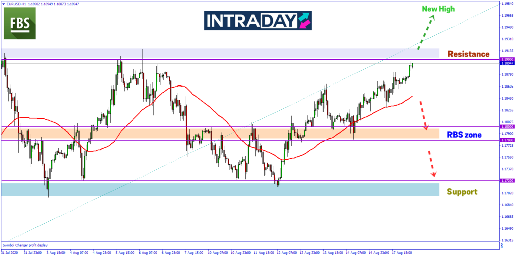 Harga bakal menguji zon resistance 1.19000 dan jika momentum dapat dikekalkan, harga akan terus membuat kenaikan ke paras ketinggian terbaru sekaligus mencatatkan paras tertinggi sejak dagangan Mei 2018.