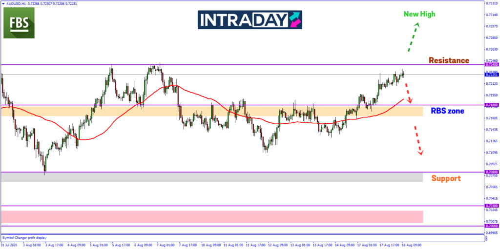 Namun jika harga kembali membuat penurunan semula, zon RBS (resistance become support) pada 0.71800 akan kembali diuji untuk harga menentukan sama ada akan menyambung semula kenaikan atau turun lebih rendah.