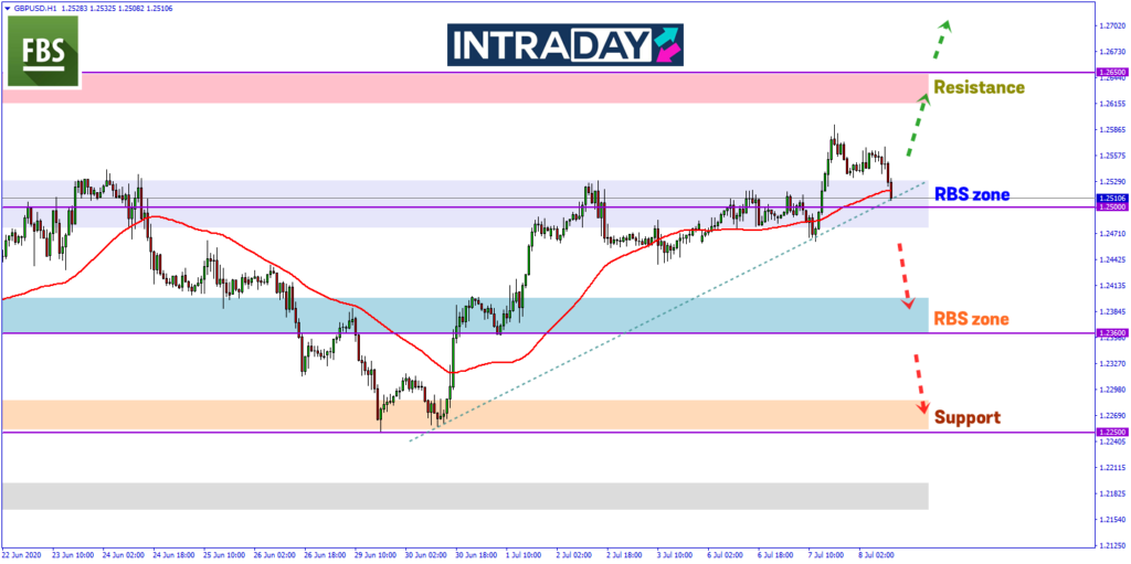 Paras sokongan Moving Average 50 (MA50) yang berada pada zon RBS (resistance become support) hampir pada 1.25000 diuji harga pada dagangan sesi Eropah.