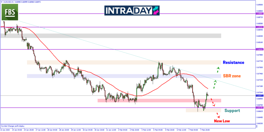 Namun, memulakan dagangan pada minggu ini, harga kembali mencatatkan kenaikan dari zon support tersebut melepasi zon minor SBR (support become resistance) pada 0.66850 dan meneruskan kenaikan lebih tinggi.