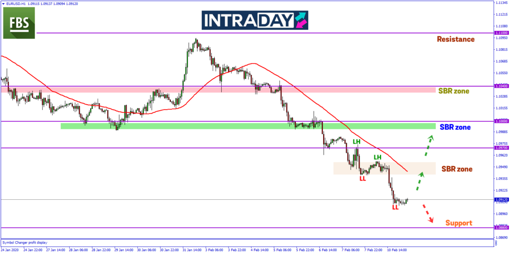 Penurunan harga bakal menuju ke paras 1.08800 iaitu zon support yang diuji pada awal dagangan Oktober 2019 di mana harga gagal tembusi zon tersebut.