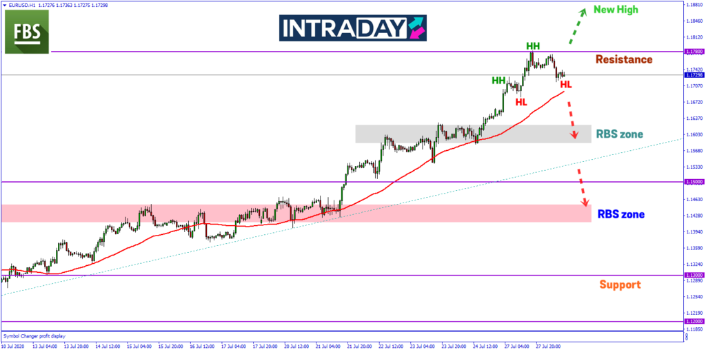 Jika dilihat pergerakan harga pada carta pasangan matawang EUR/USD, harga telah membuat kenaikan ke paras ketinggian 1.17800 dicapai semalam.