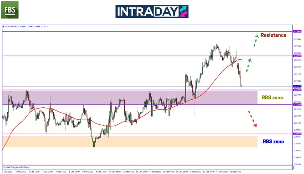 Penurunan lebih rendah harga yang berjaya menembusi zon tersebut akan mendorong harga menuju pula ke zon RBS lebih rendah di bawah paras 1.20900.
