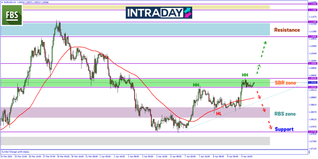 Harga pada carta EUR/USD pada sesi Asia hari ini bergerak mendatar pada zon SBR (support become resistance) di atas paras 1.0920.