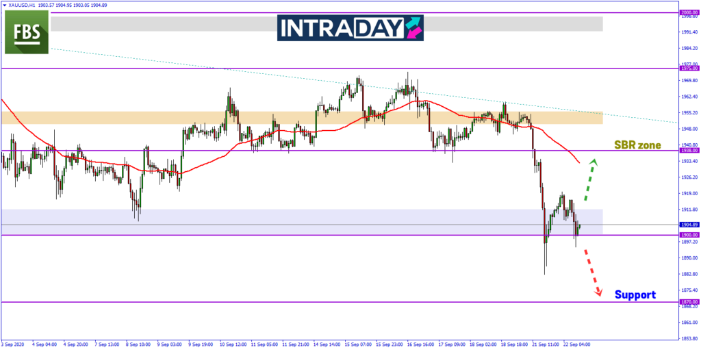 Walaupun penurunan berjaya menembusi zon support harga 1900.00, namun harga kembali menutup dagangan sesi New York di atas paras tersebut semula. Harga kekal bergerak di bawah paras 1920.00 pada sesi Asia pagi ini sebelum paparkan tanda-tanda untuk meneruskan penurunan lebih rendah.