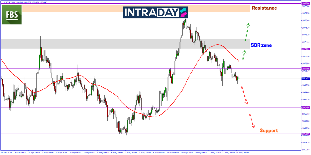 Kenaikan lebih tinggi akan menguji zon SBR (support become resistance) pada 107.300 sebelum kembali menuju ke paras ketinggian yang dicapai pada awal minggu sekitar 107.770.