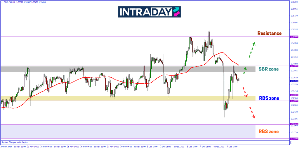 Penurunan harga dilihat akan menguji semula zon RBS (resistance become support) 1.33000 dan jika penurunan diteruskan, zon RBS lebih rendah pada 1.32000 akan menjadi tumpuan harga.