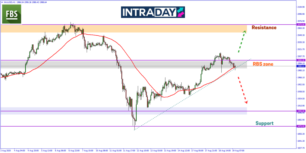 Dagangan yang bersambung pada hari ini melihatkan harga susut semula di bawah paras 2000.00 dan menguji paras sokongan Moving Average 50 (MA50) untuk pergerakan 1 jam harga di carta XAU/USD.