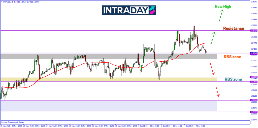 Sehingga dagangan yang bersambung ke sesi Eropah, harga dilihat turun ke paras sekitar 1.34000 menguji zon RBS (resistance become support) tersebut.