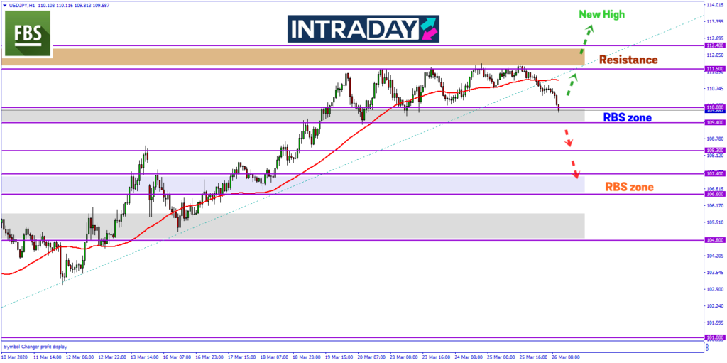 Penurunan harga telah menuju paras penting 110.00 pada sesi Eropah dan menguji zon RBS (resistance become support) tersebut.