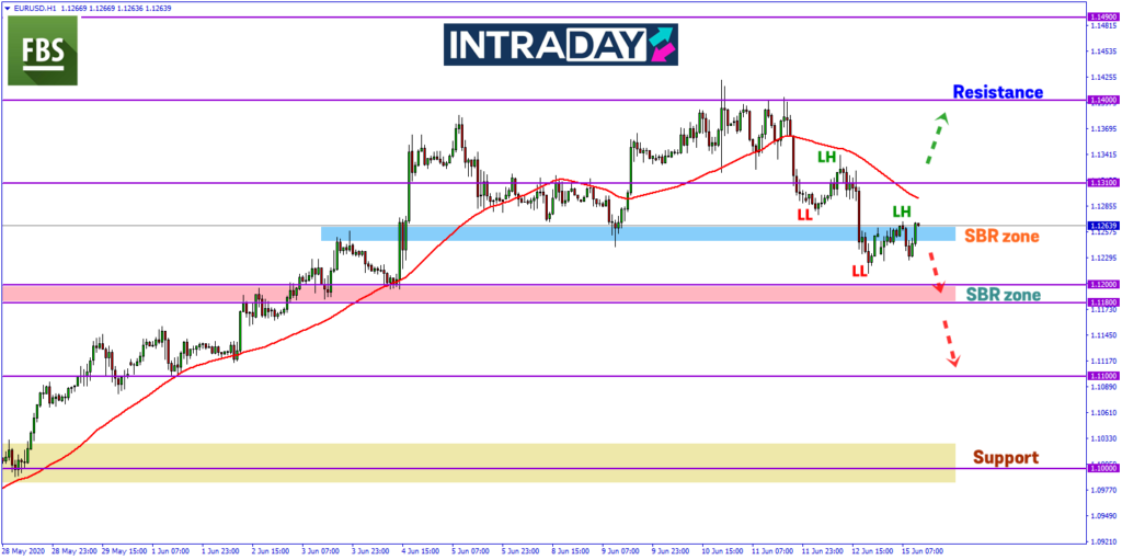 Pada Jumaat, harga telah mencatatkan penurunan harian sekitar 120 pips mencecah 1.12130 sebelum menutup dagangan sedikit tinggi sekitar 1.12500 pada zon SBR (support become resistance).