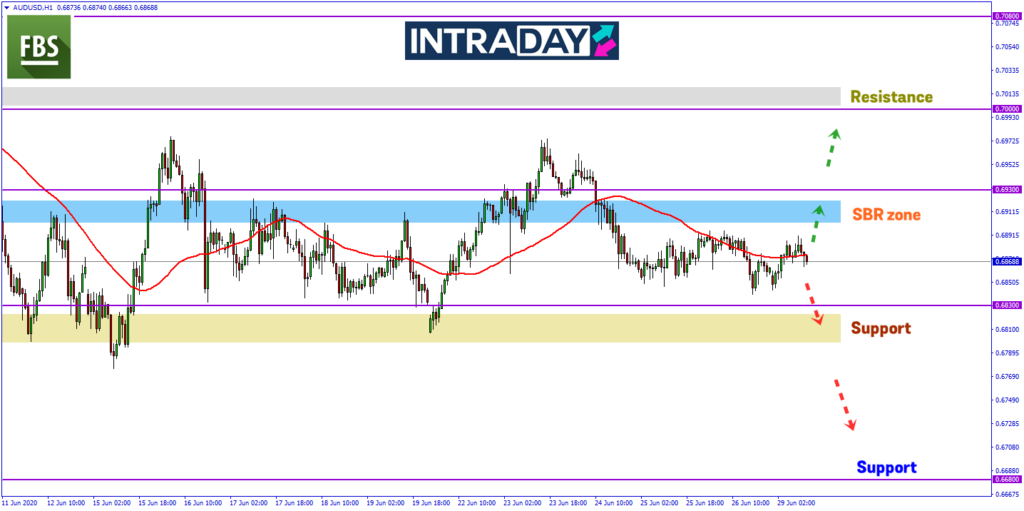 Namun jika harga meneruskan kenaikan, zon SBR (support become resistance) sekitar 0.69000 akan diuji sebelum harga menuju ke paras resistance minggu lalu pada ketinggian 0.69700.
