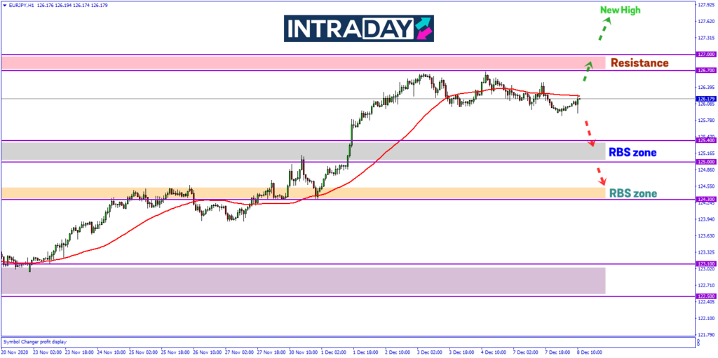 Penurunan harga akan dijangkakan menuju zon RBS (resistance become support) pada 125.00 selepas paras tersebut yang menjadi rintangan sebelum ini telah berjaya ditembusi.