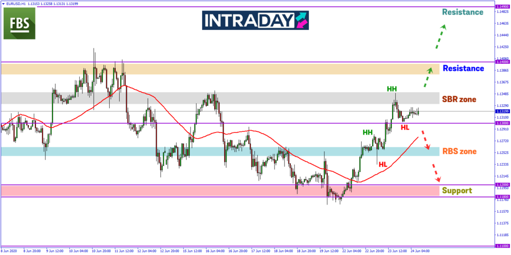 Penurunan lebih rendah akan menguji zon RBS (resistance become support) sekitar 1.12500 sebelum ke zon support pada 1.12000.