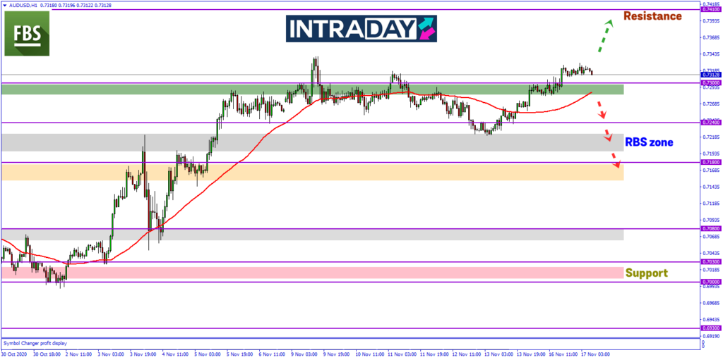 Pada carta pasangan mata wang AUD/USD, harga yang menguji paras rintangan 0.73000 pada sesi Asia semalam sehingga ke sesi Eropah akhirnya berjaya menembusi paras tersebut pada sesi berikutnya susulan laporan terbaru berkenaan vaksin.