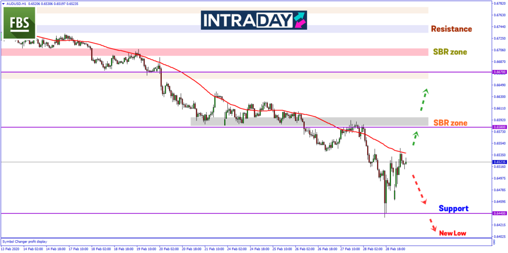 Namun jika harga berjaya tembusi halangan MA50, berkemungkinan harga akan menuju zon SBR (support become resistance) pada 0.65800 dan memberi isyarat awal perubahan trend.