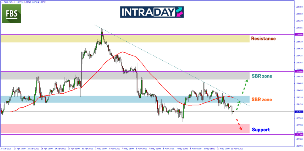 Sebaliknya jika harga kembali membuat kenaikan semula, paras tumpuan pada 1.08300 di zon SBR (support become resistance) akan diuji semula. Harga juga akan menguji garis halangan dinamik Moving Average 50 (MA50).