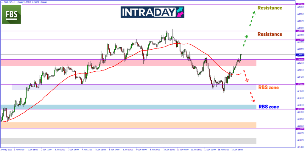 Harga membuat kenaikan dan melepasi paras halangan Moving Average 50 (MA50) pada rangka masa 1 jam pergerakan harga di carta GBP/USD sehingga ke paras 1.26400 pada zon SBR (support become resistance) pada dagangan yang bersambung di sesi Asia hari ini.