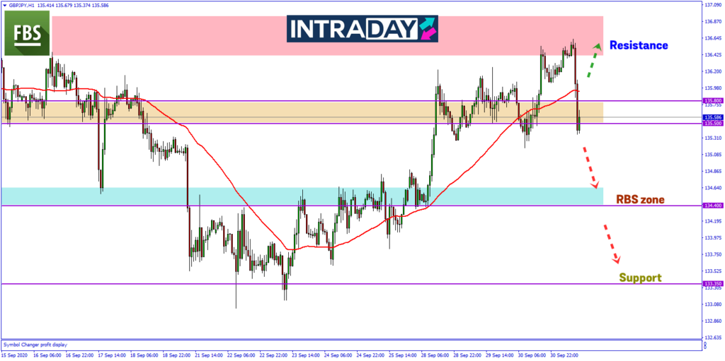 Jika harga kembali melonjak semula melepasi paras halangan Moving Average 50 (MA50) pada pergerakan 1 jam harga, kenaikan berkemungkinan akan kembali semula ke paras ketinggian 136.600 yang dicapai hari ini.