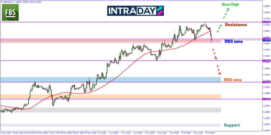 Penurunan lebih rendah akan menuju paras tumpuan pada 1.25000 yang juga berada pada zon RBS sebelum penurunan diteruskan sehingga ke paras 1.26300.