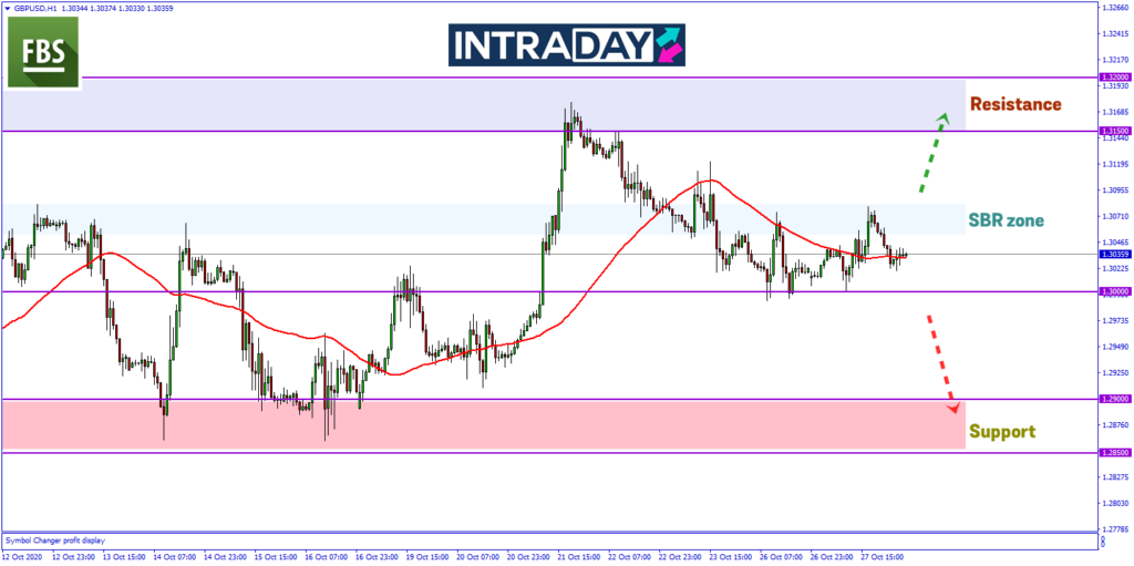 Jika diperhatikan pergerakan harga di sesi Asia semalam, harga gagal melepasi halangan Moving Average 50 (MA50) pada rangka masa 1 jam sebelum turun semula ke paras 1.30000.
